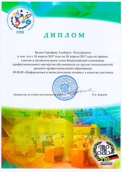 Гарифов Альберт, студент 3 курса Вятско-Полянского механического техникума, представлял на олимпиаде Кировскую область (руководитель Ильина Светлана Анатольевна).