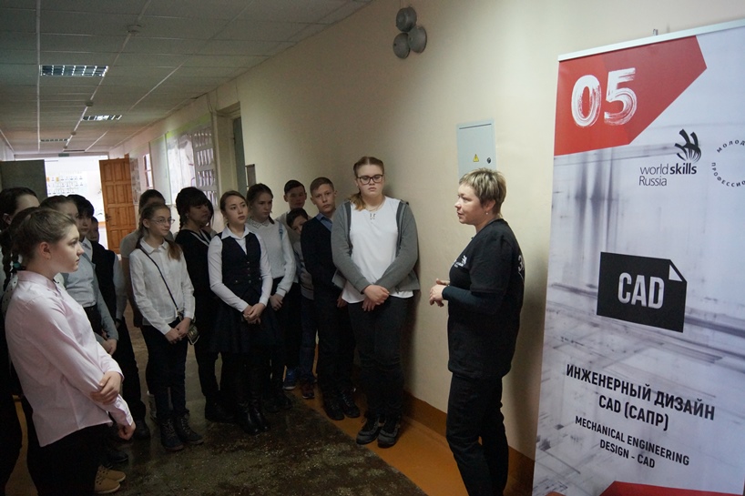 Для учащихся была организована экскурсия в музей техникума, где волонтеры рассказали историю становления техникума. Была подготовлена презентация с подробными описаниями специальностей и профессий, которые можно получить в Вятско-Полянском техникуме. Студенты-старшекурсники провели мастер-классы в лабораториях и мастерских техникума, где учащиеся школ могли, например, почувствовать себя в роли сварщика. Пообщались с участниками и экспертами соревнования и получили возможность побывать на выставочных стендах в рамках проведения Чемпионата.