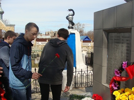 Участники почтили память погибших воинов минутой молчания, возложили гвоздики и венки к памятнику.